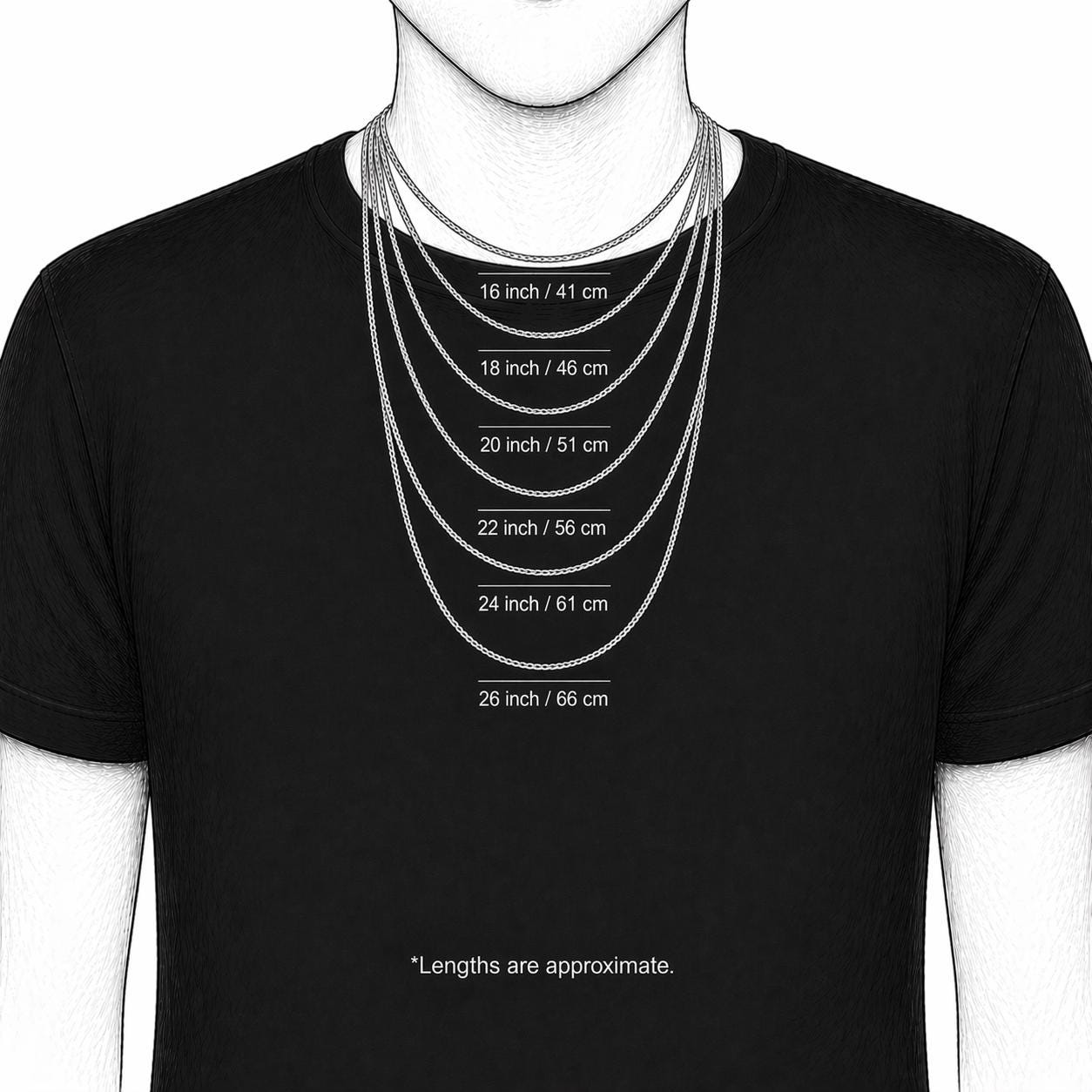 Necklace length: 14 to 26 inches / 35 - 81 cm