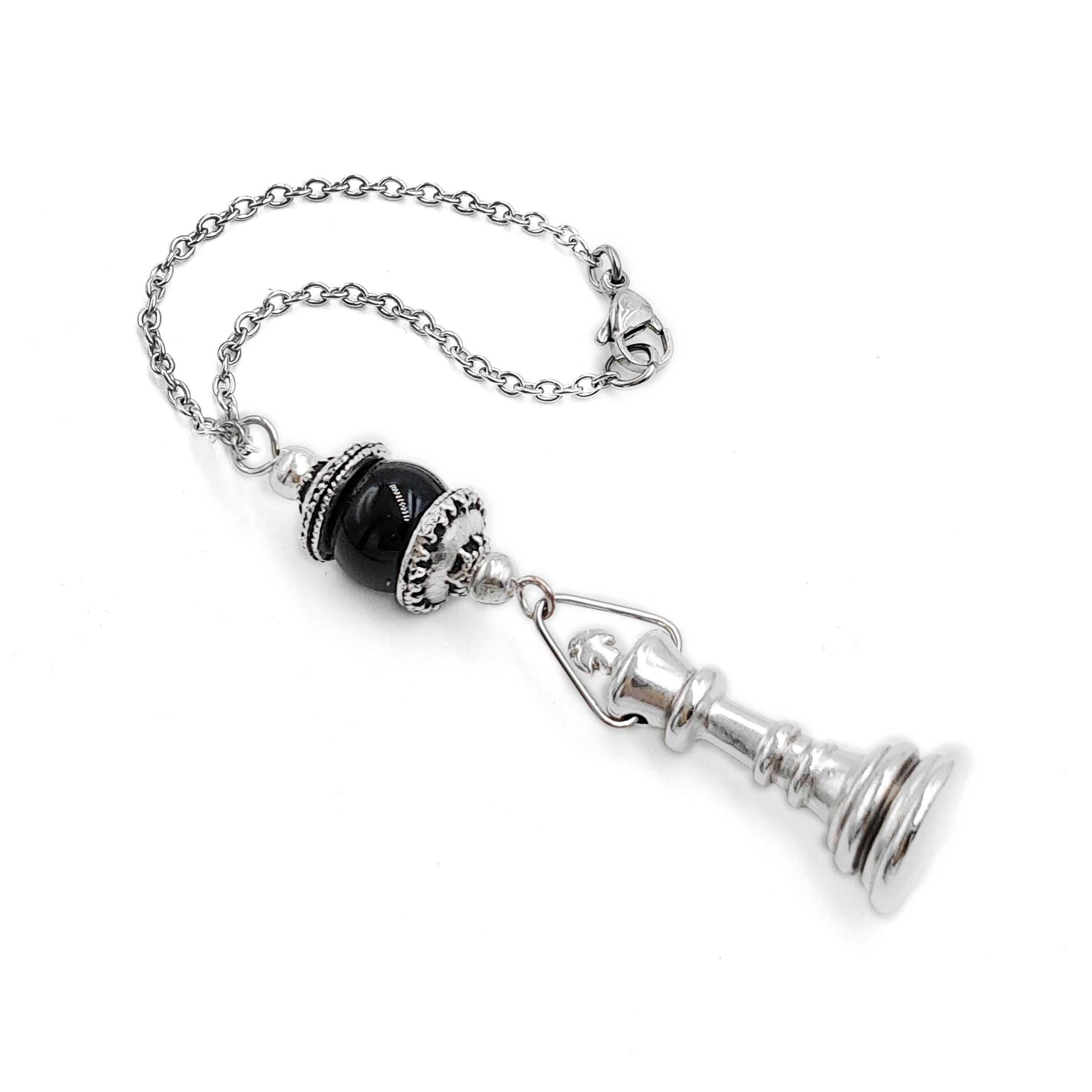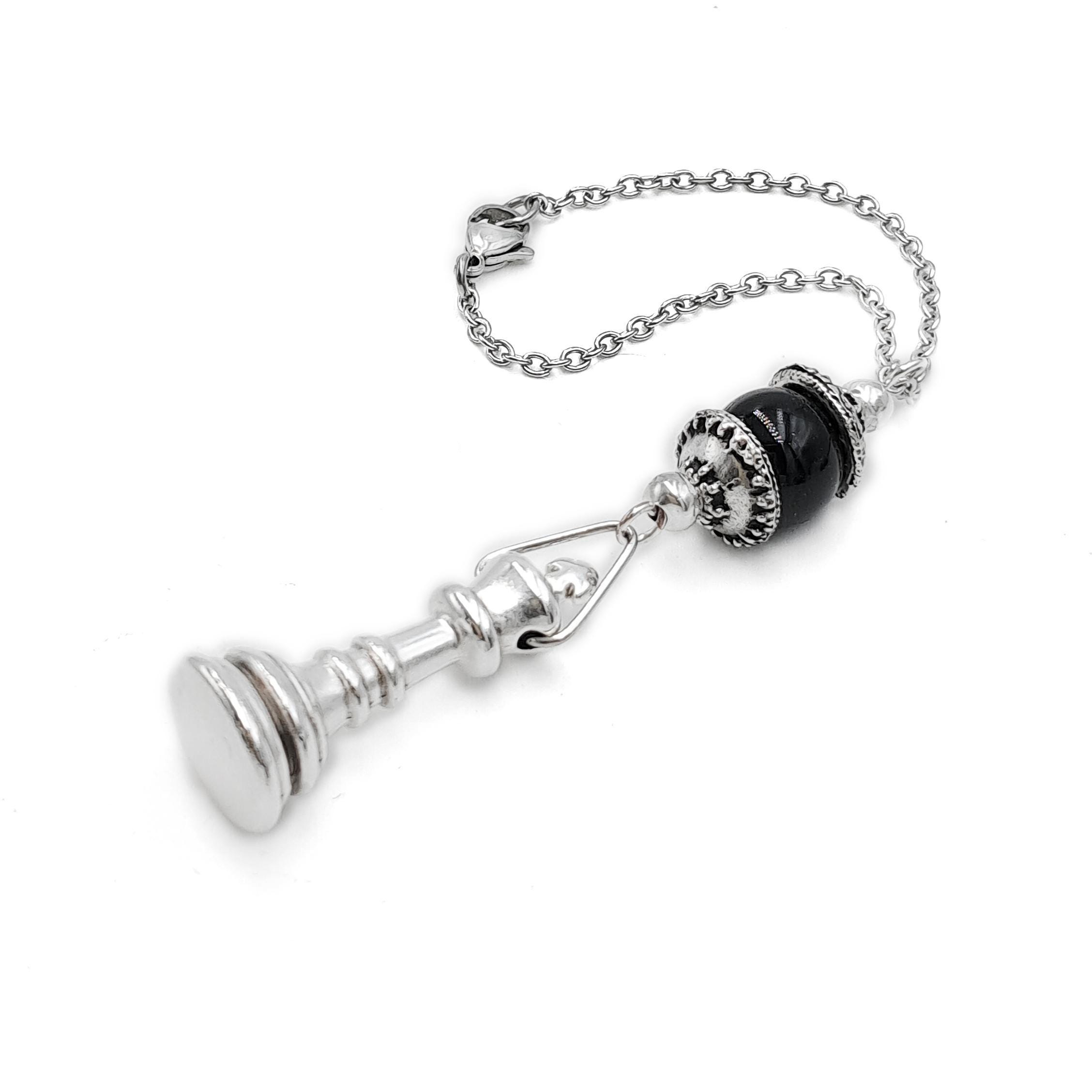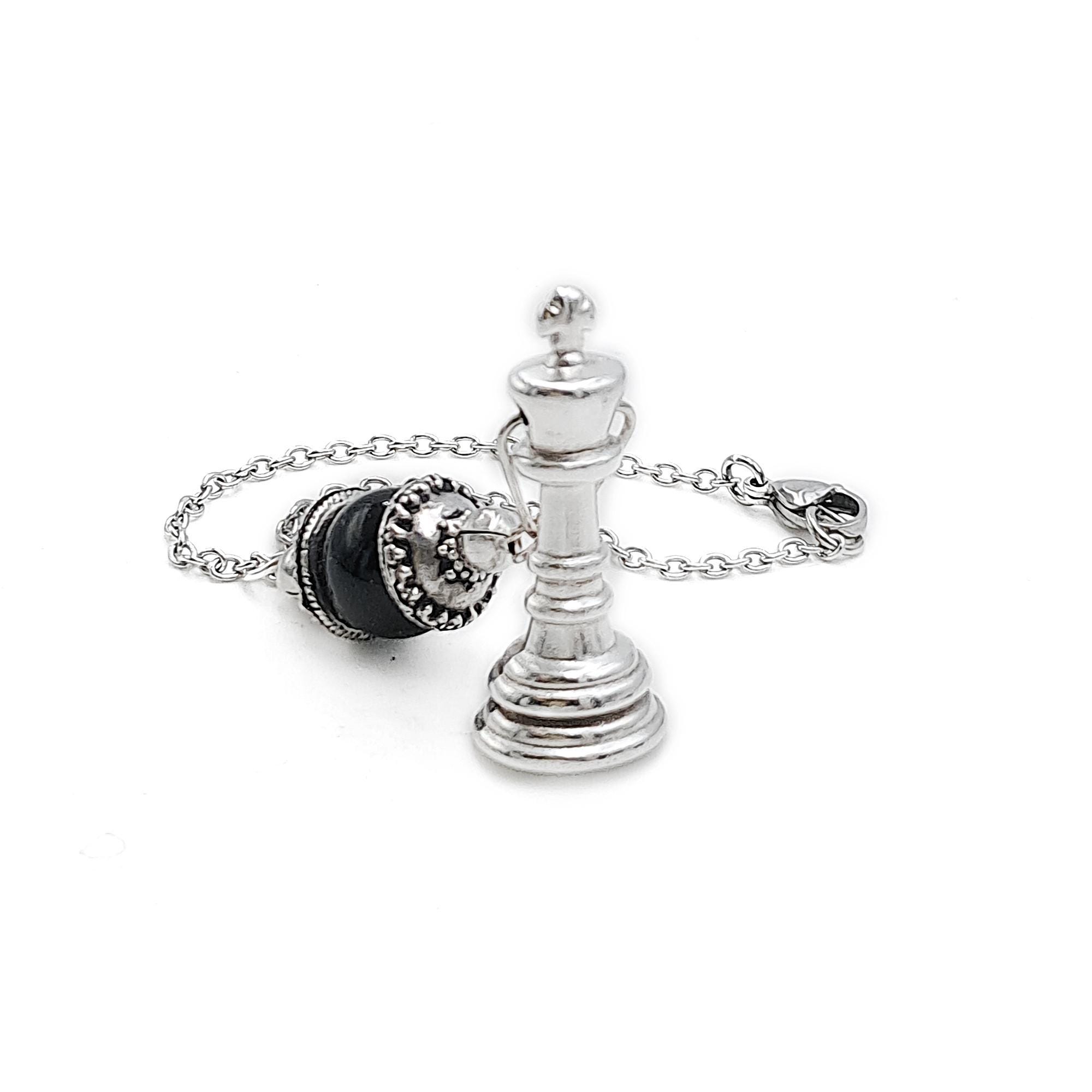Ηandcrafted car mirror charm made with steel chain, a stone bead of your choice, and a silver-plated metal chess King. Please select your preferred bead and chain length from the drop-down menu.