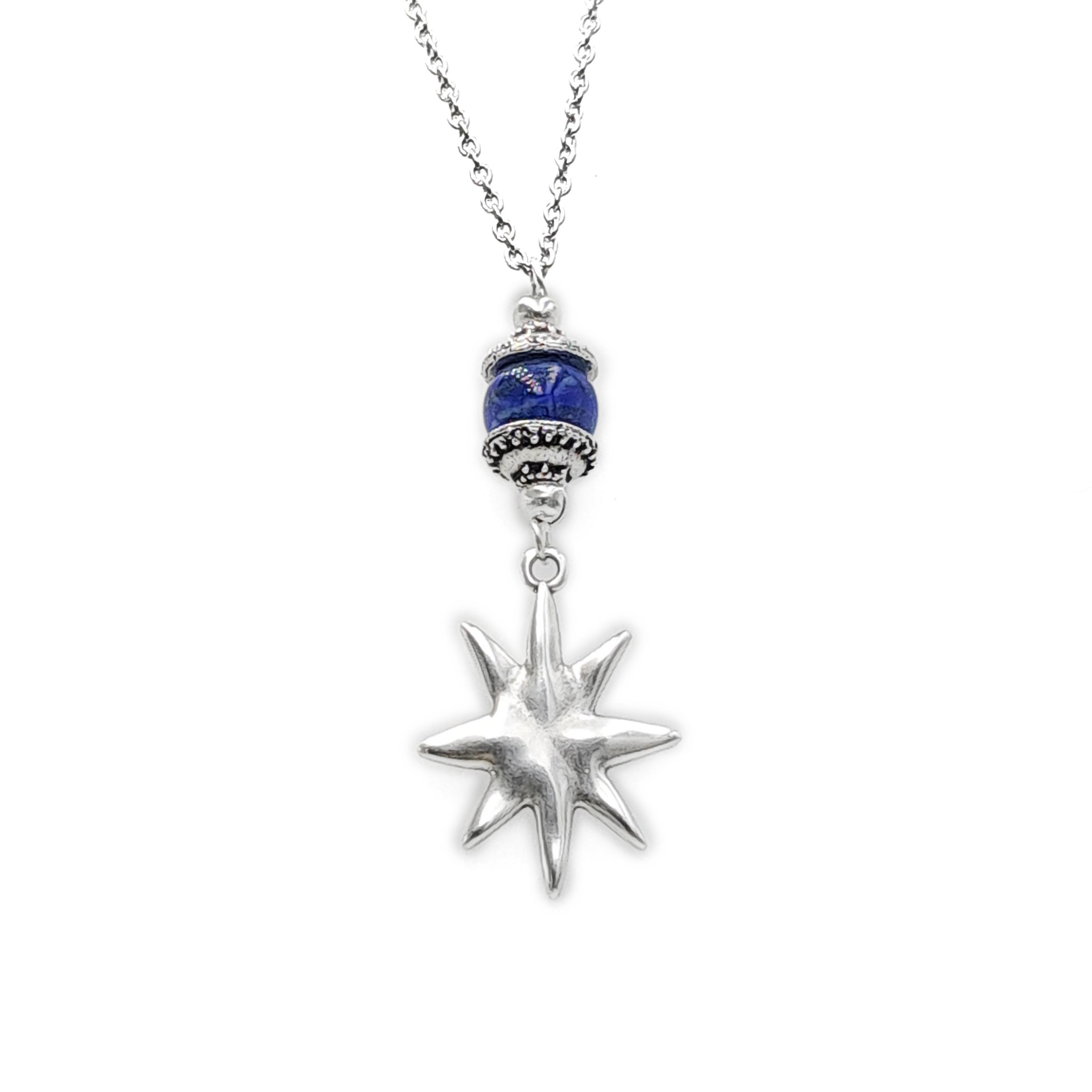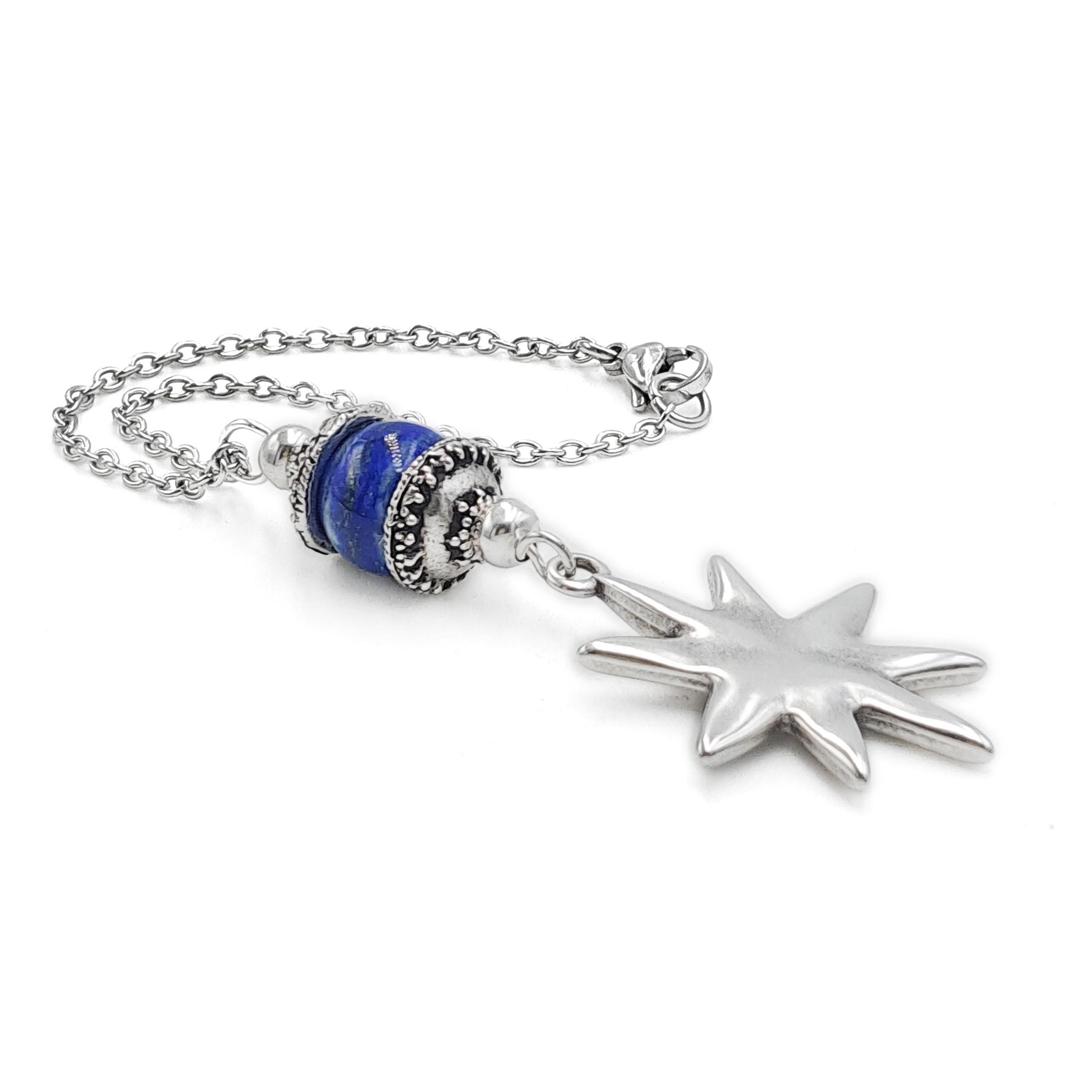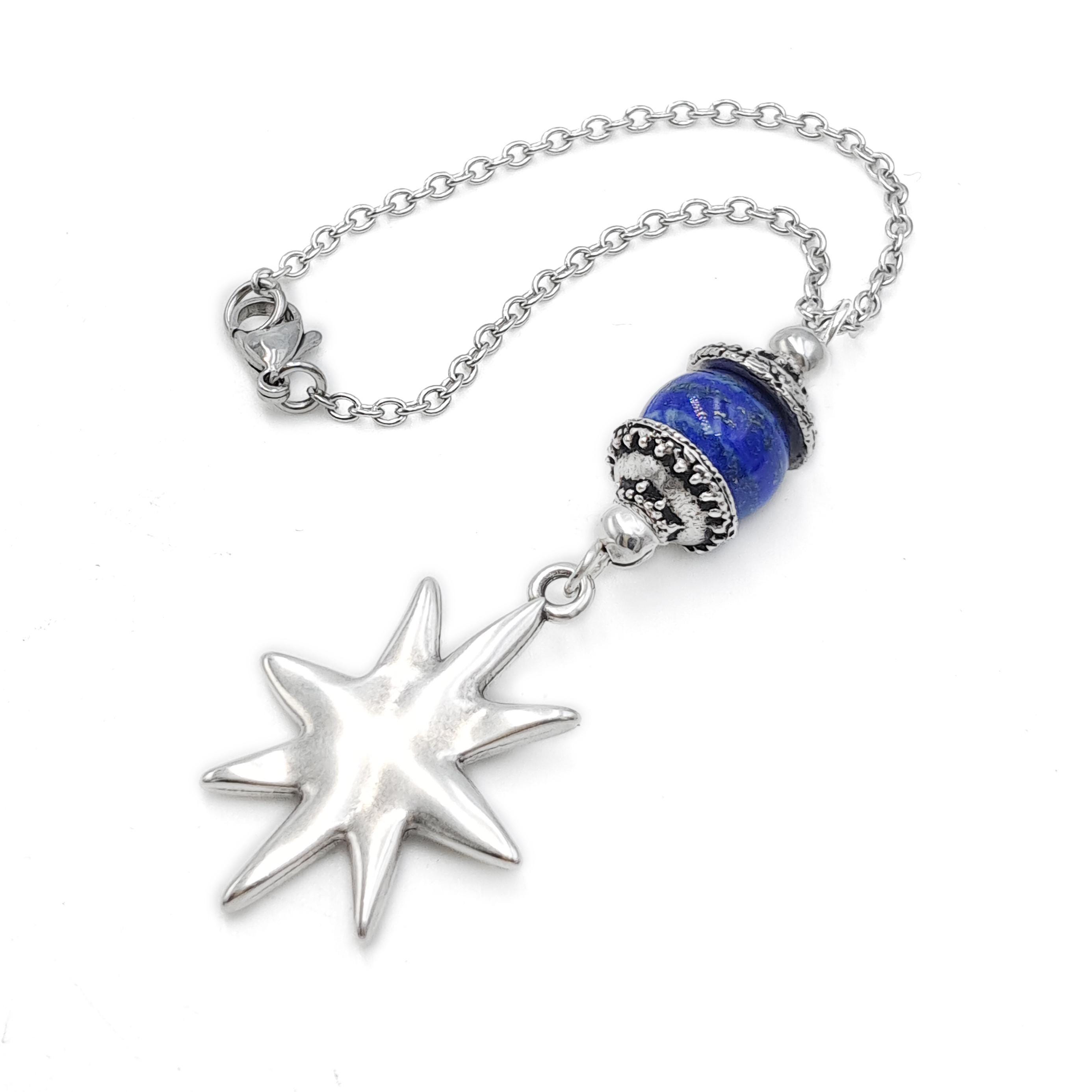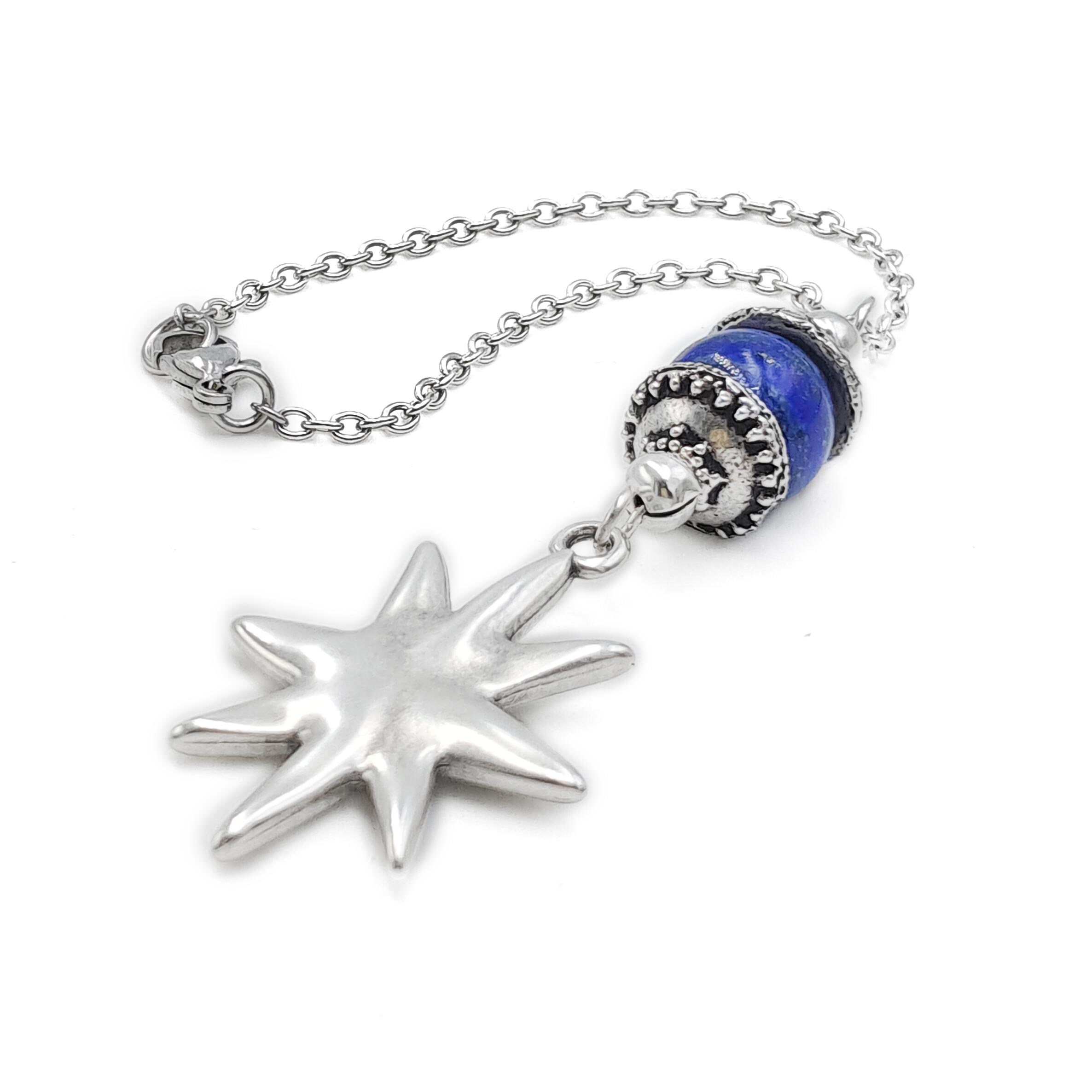 Ηandcrafted car mirror charm made with steel chain, a stone bead of your choice, and a 925 silver-plated metal star. Please select your preferred bead and chain length from the drop-down menu.