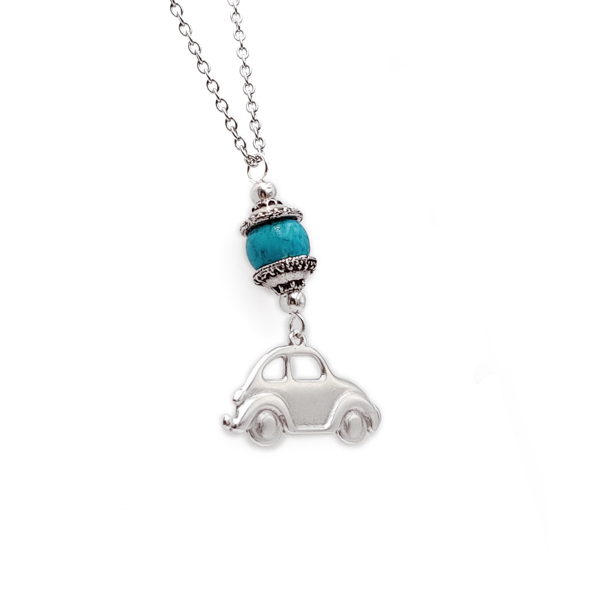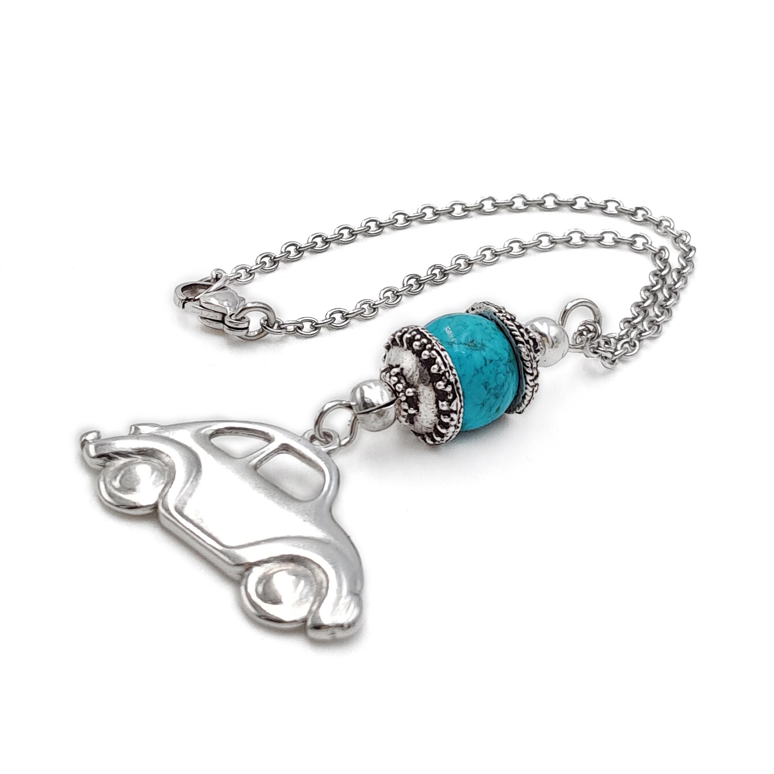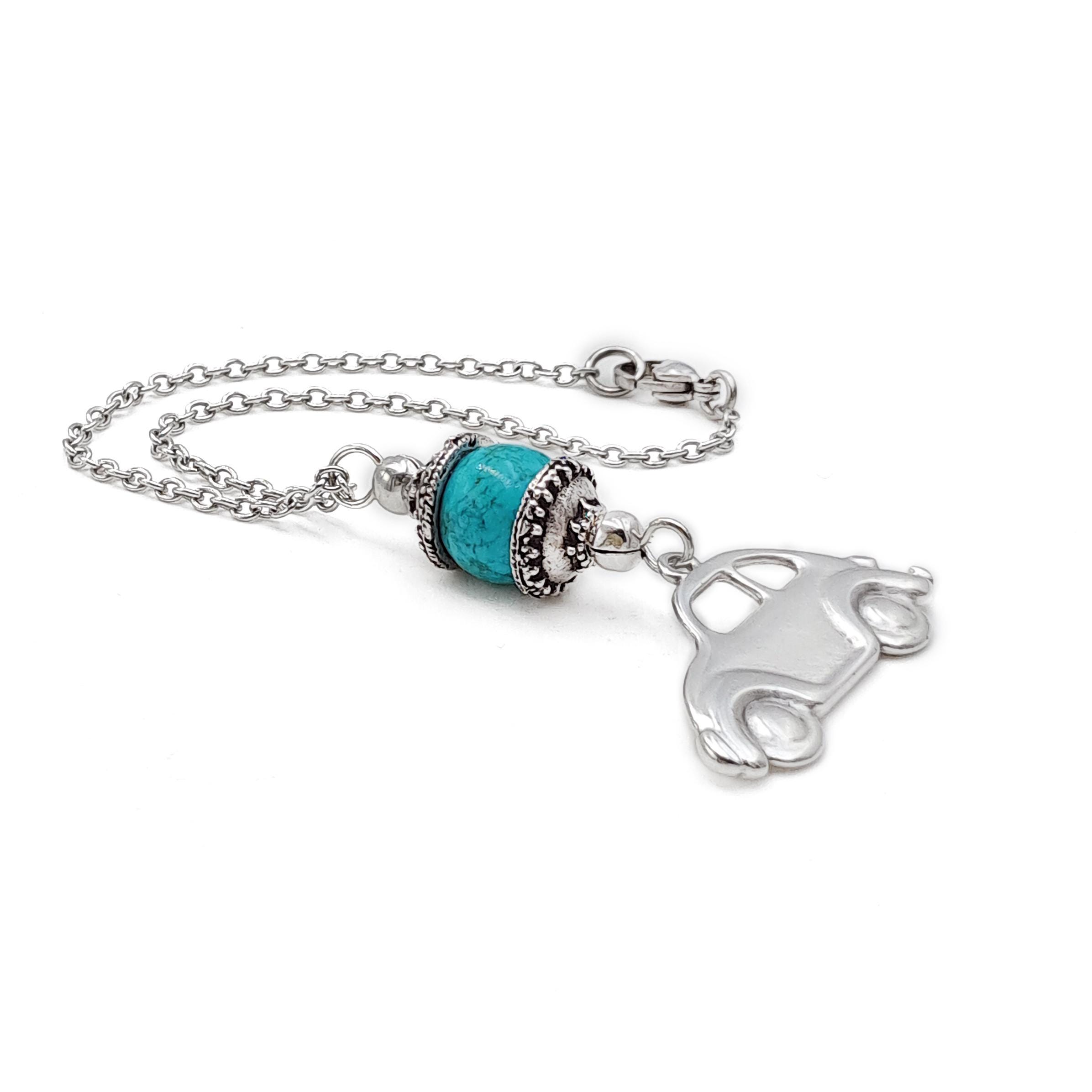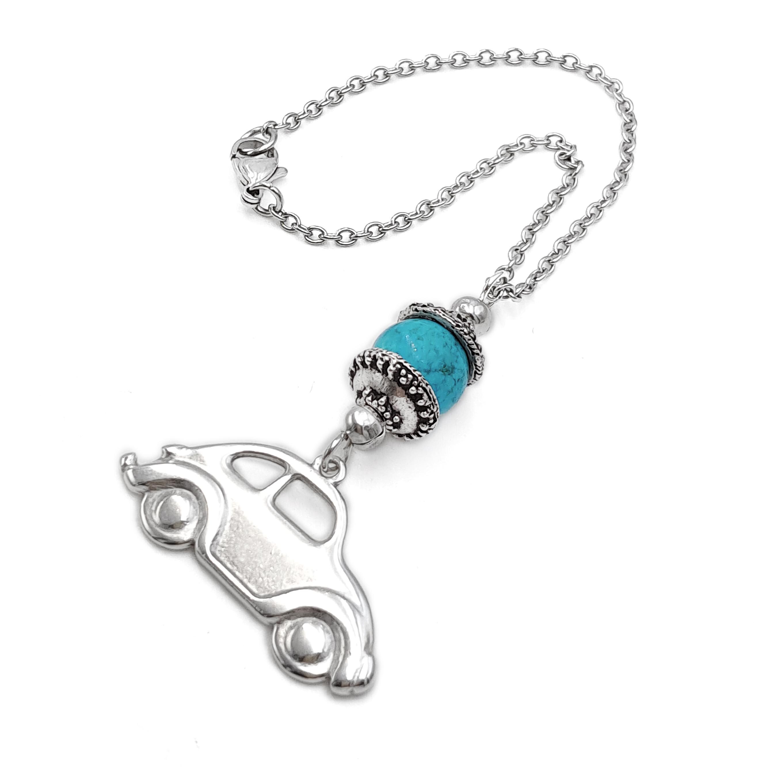 Ηandcrafted car mirror charm made with steel chain, a stone bead of your choice, and a 999 silver-plated metal car. Please select your preferred bead and chain length from the drop-down menu.