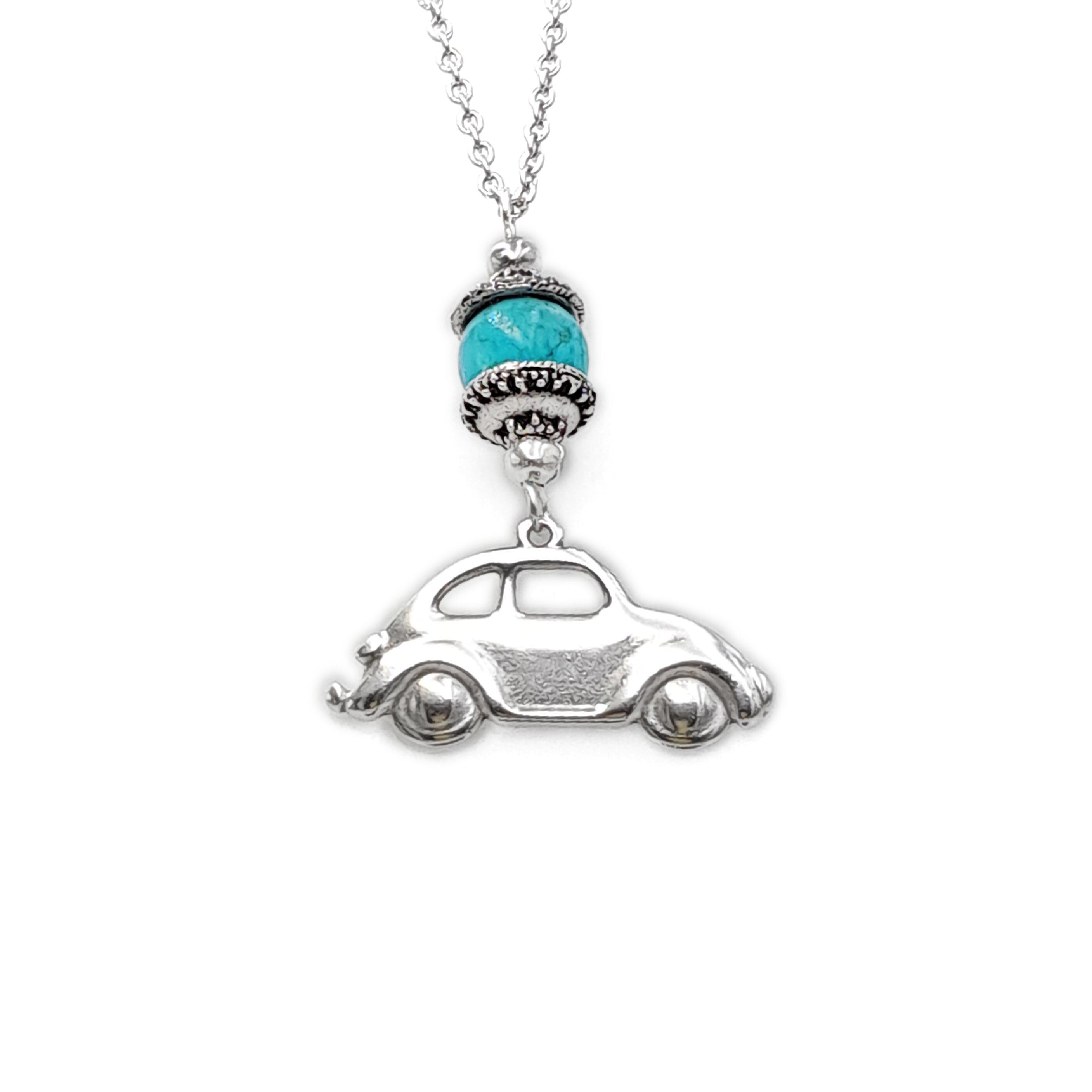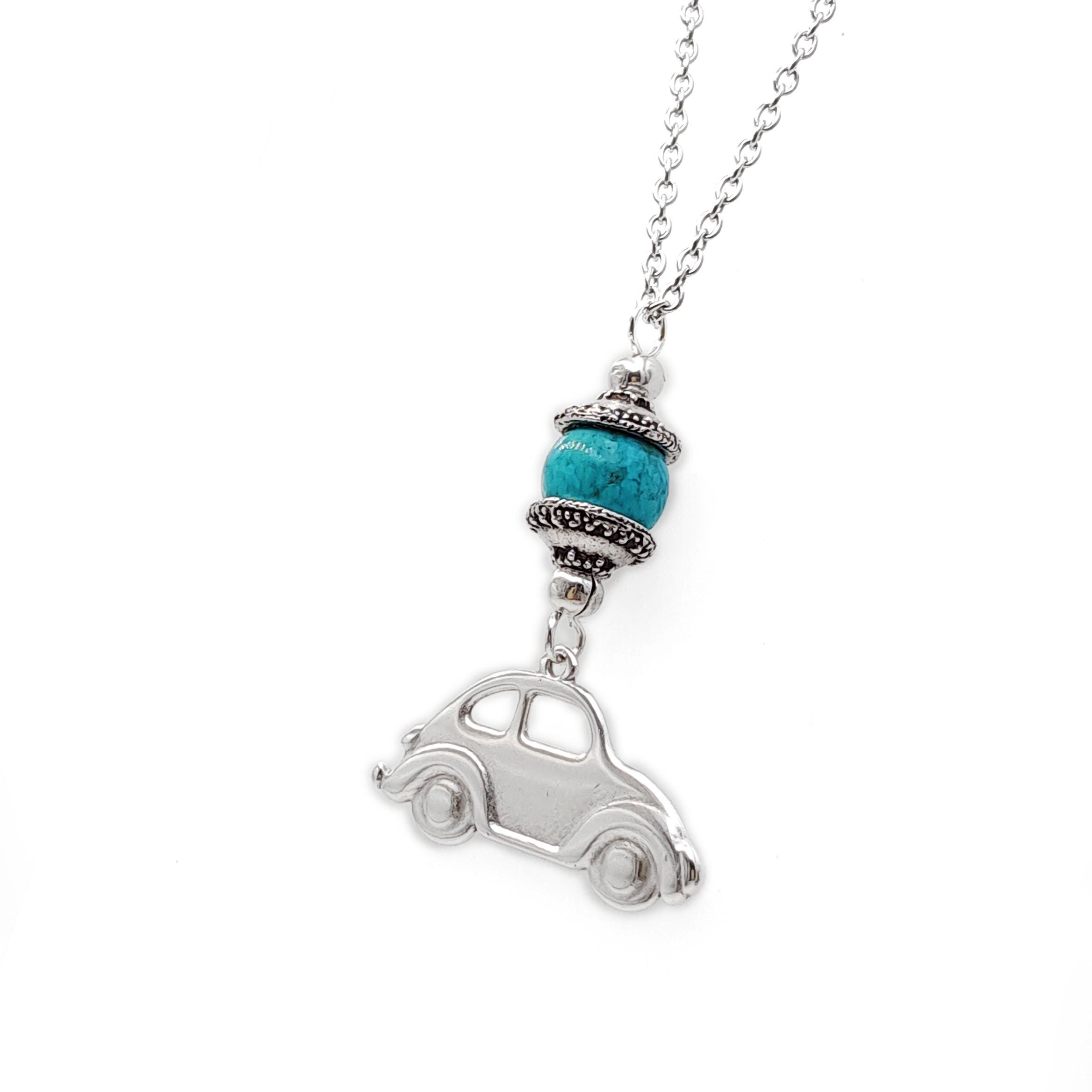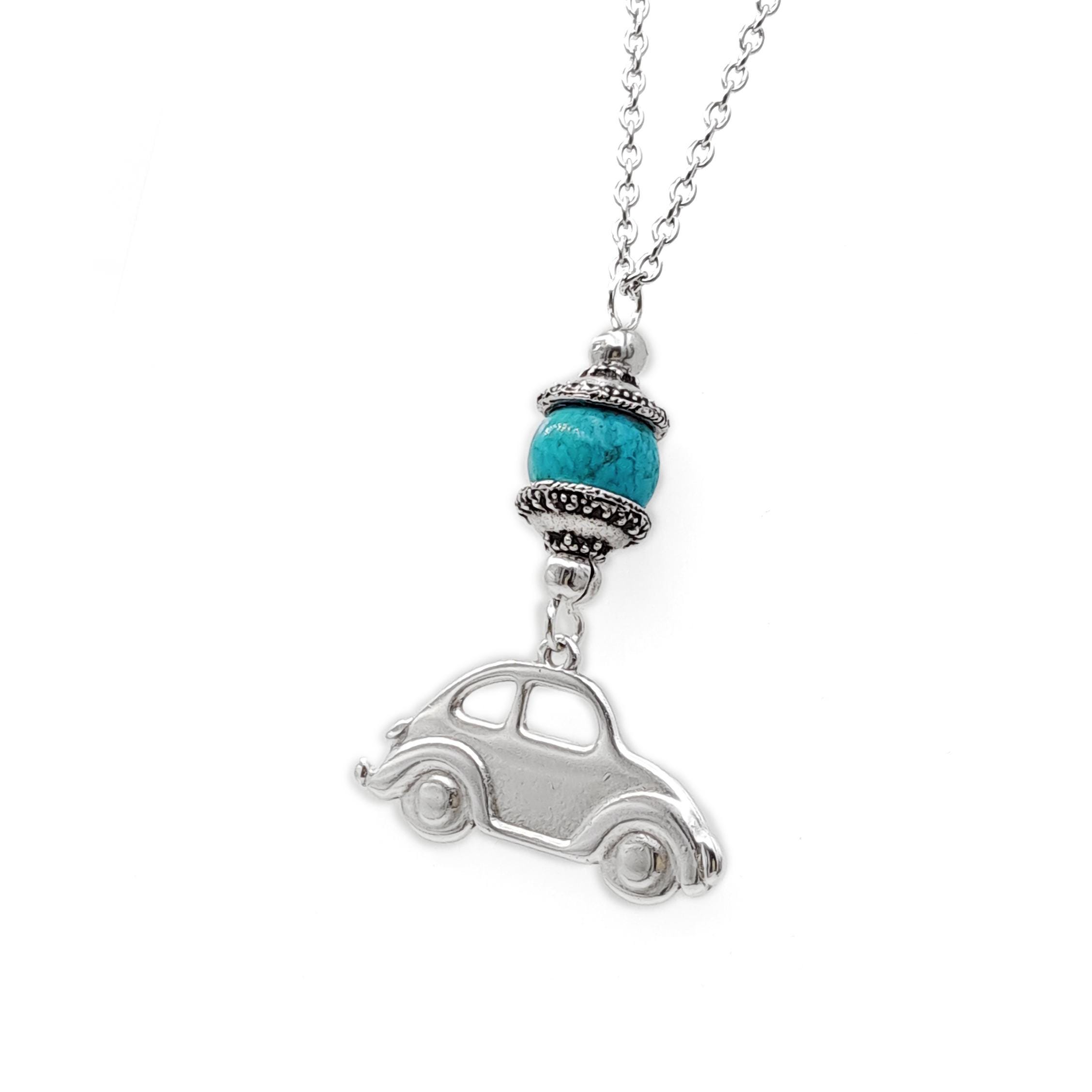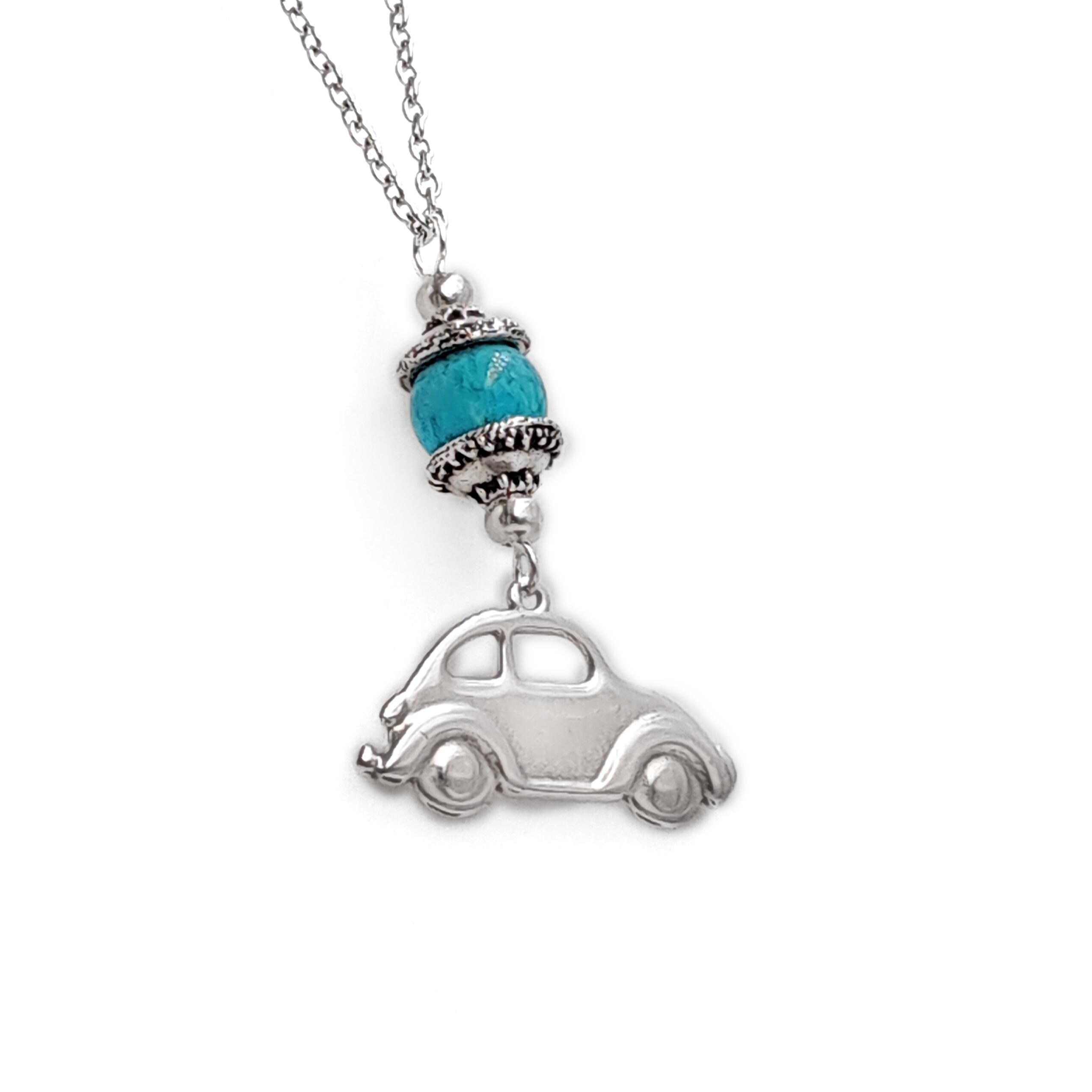 Ηandcrafted car mirror charm made with steel chain, a stone bead of your choice, and a 999 silver-plated metal car. Please select your preferred bead and chain length from the drop-down menu.