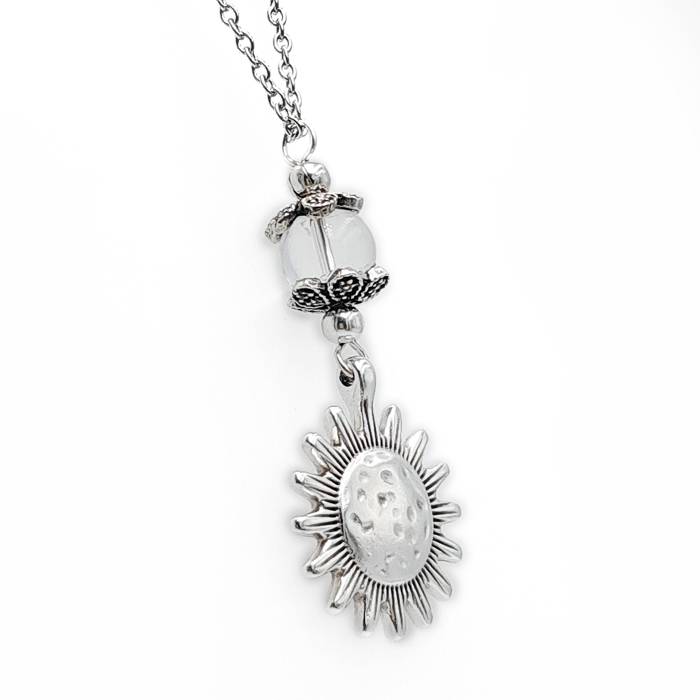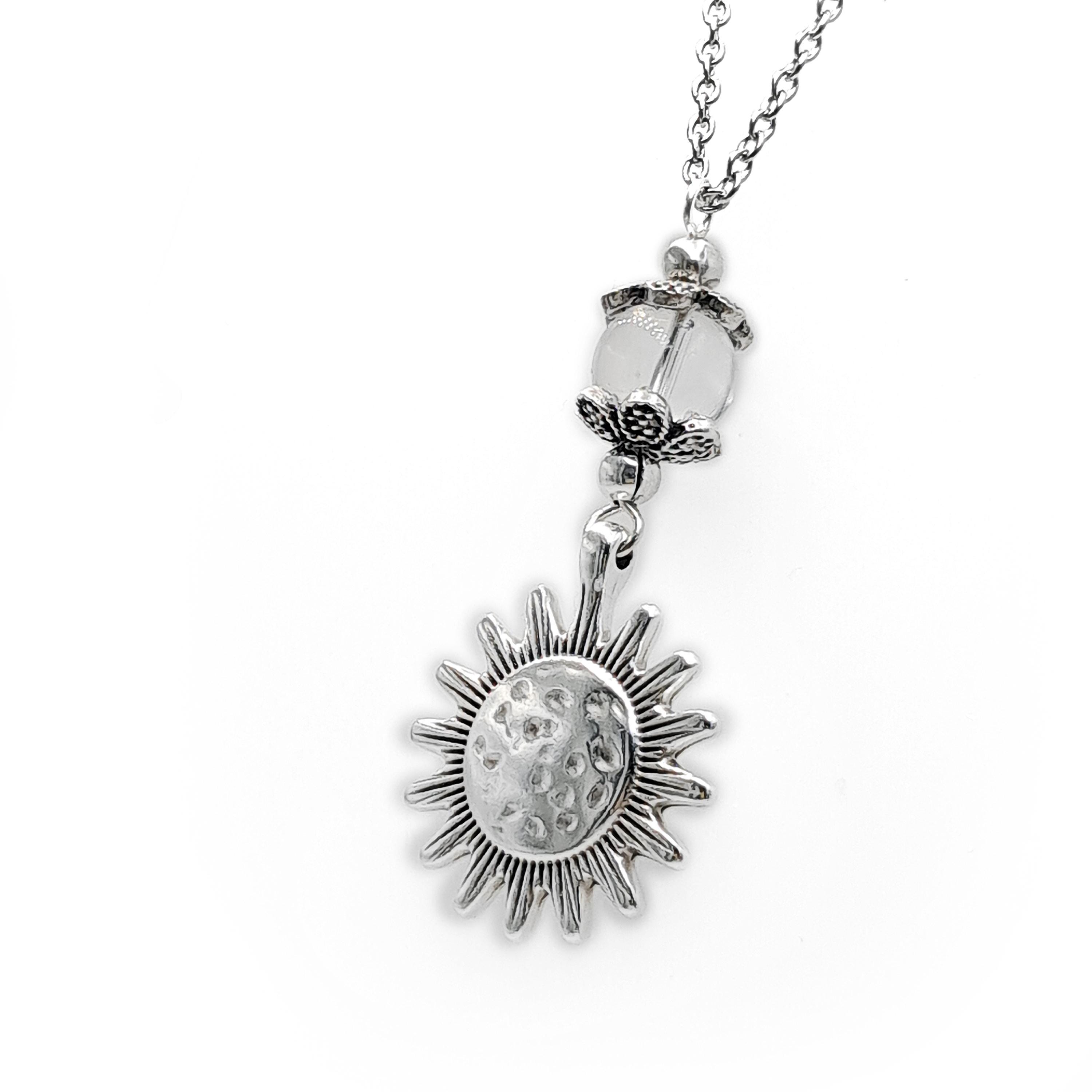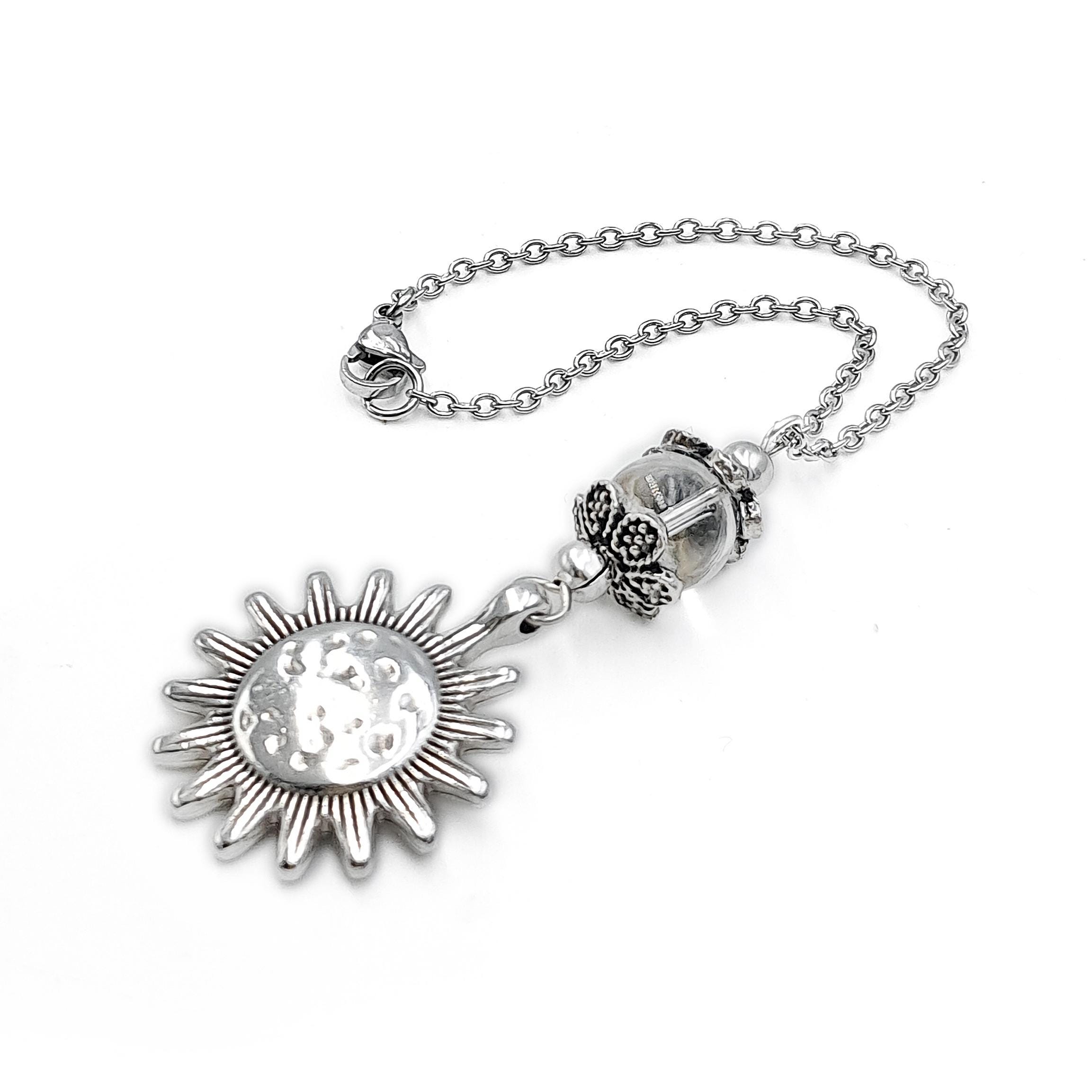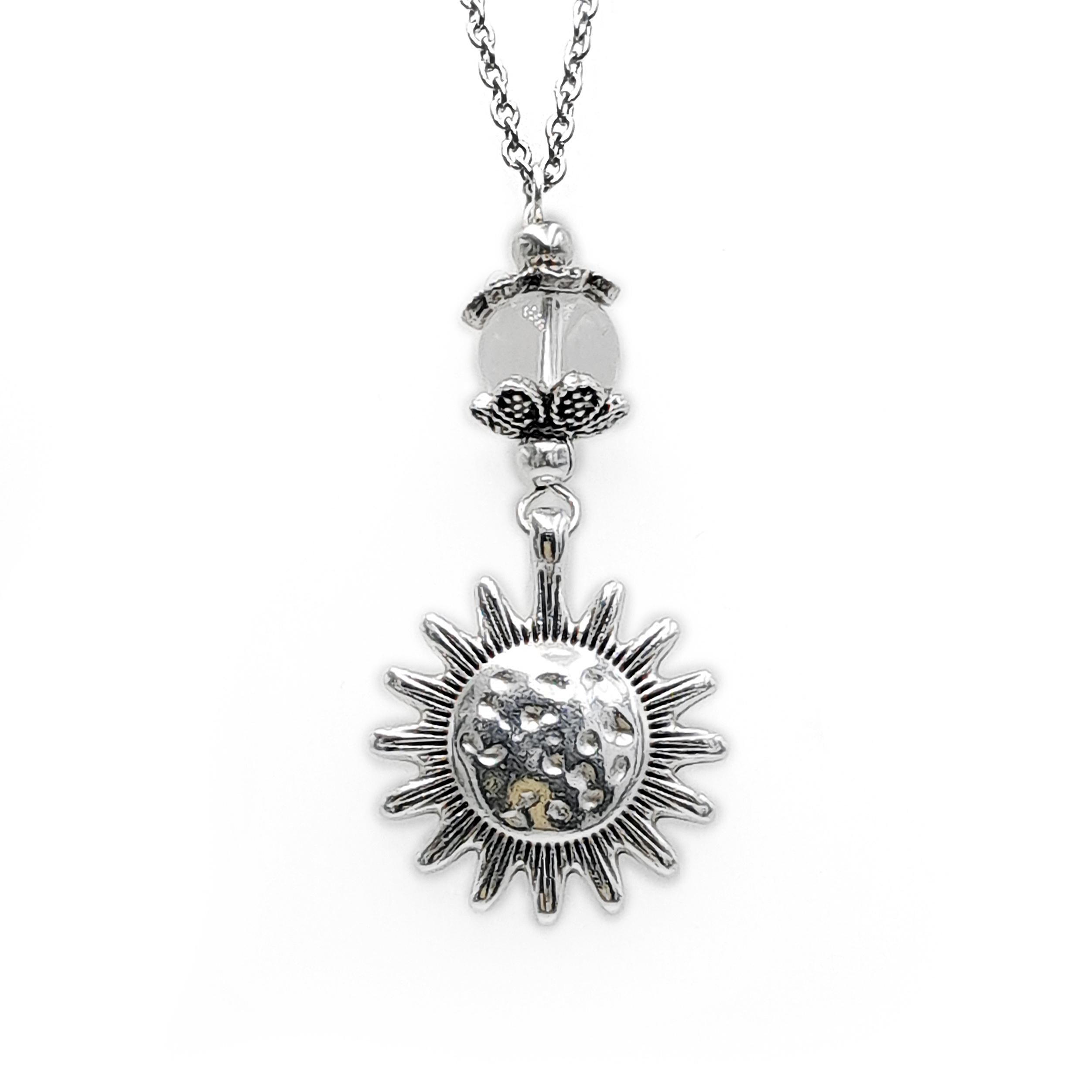 Ηandcrafted car mirror charm made with steel chain, a stone bead of your choice, and a 999 silver-plated metal sun. Please select your preferred bead and chain length from the drop-down menu.