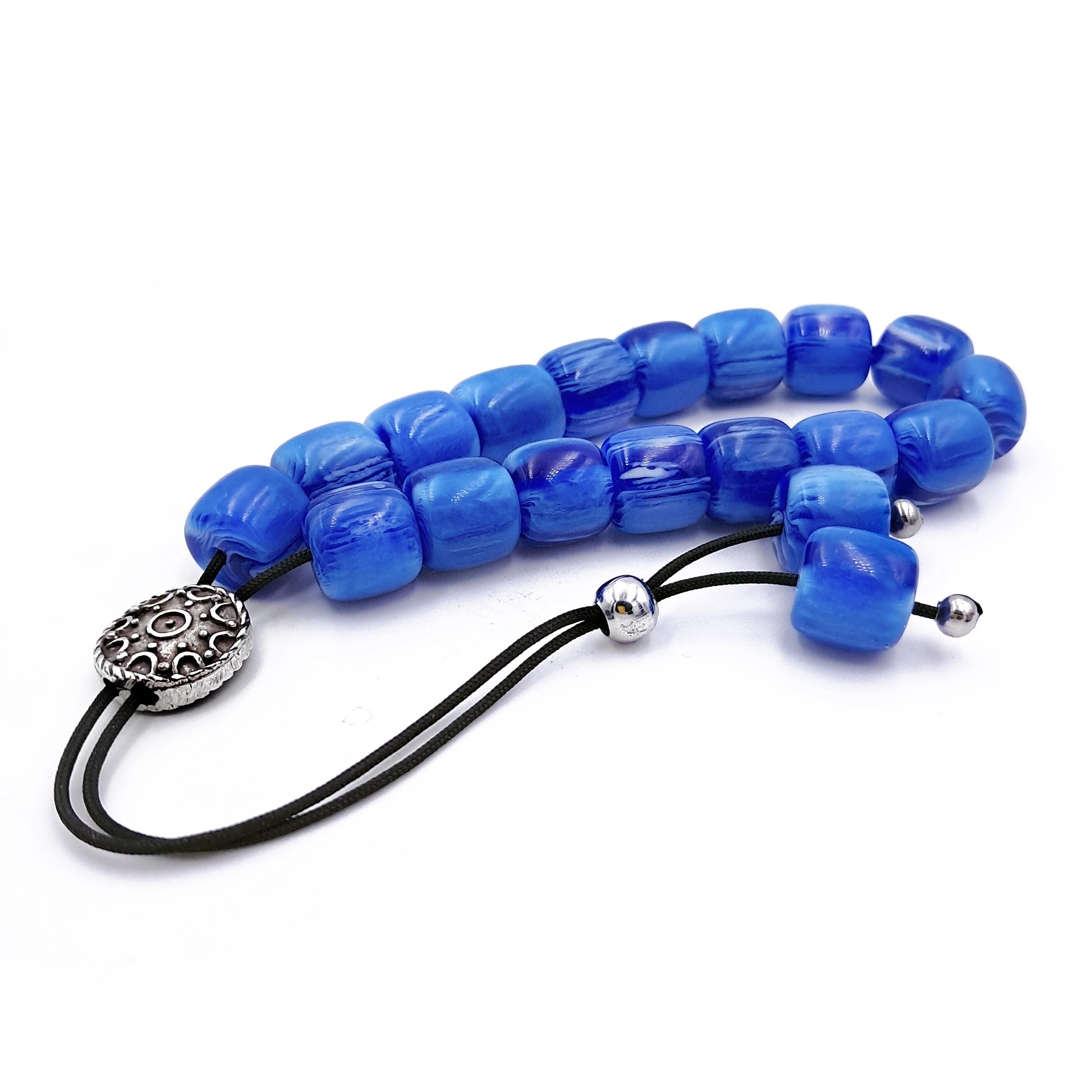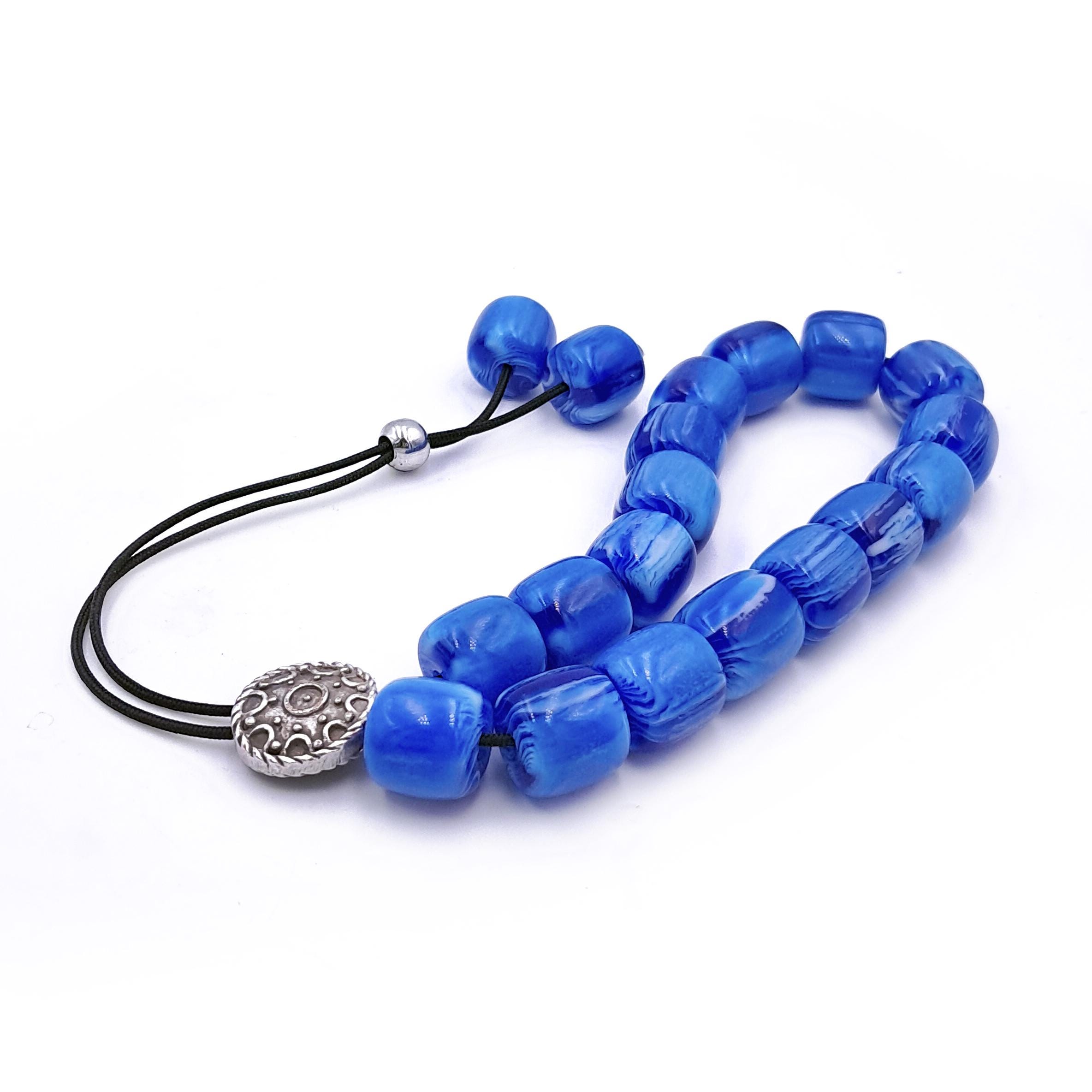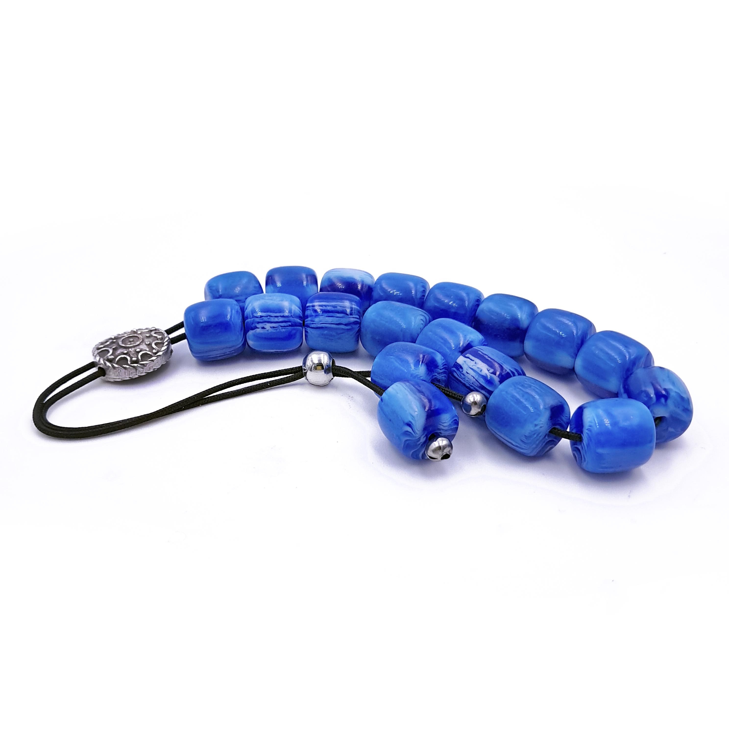 Greek komboloi (worry beads) made with 21 blue acrylic barrel beads and a silver-plated metal master bead. A classic set of komboloi, suitable for passing time and relaxation.