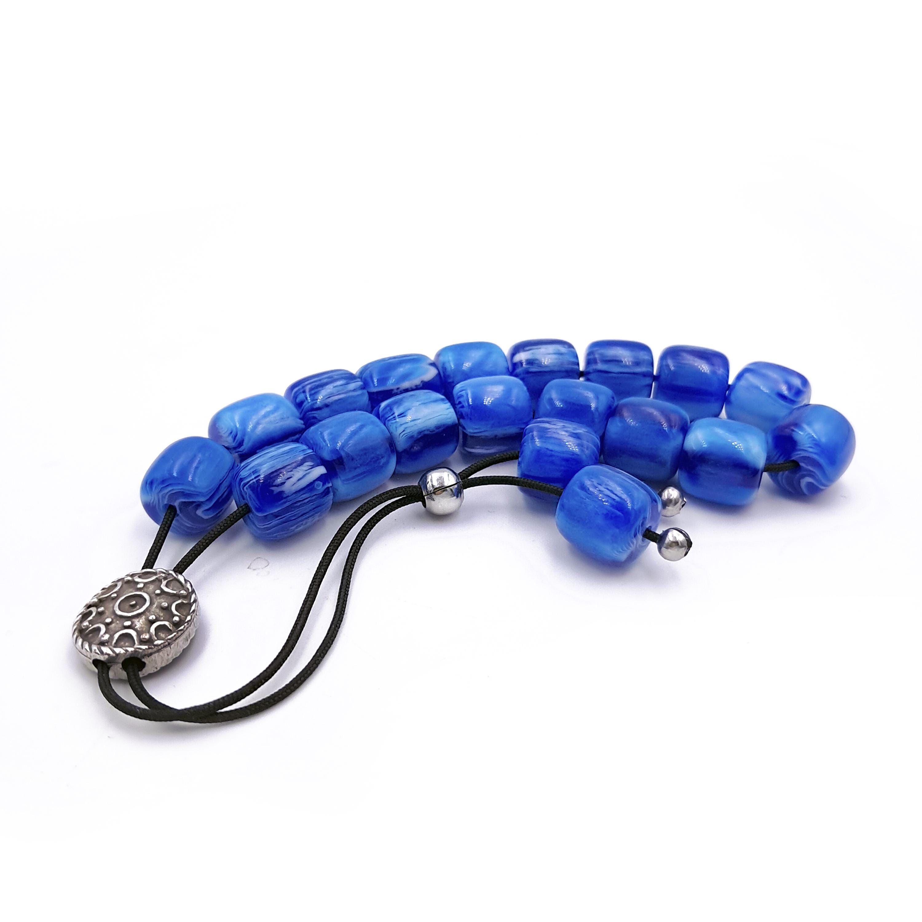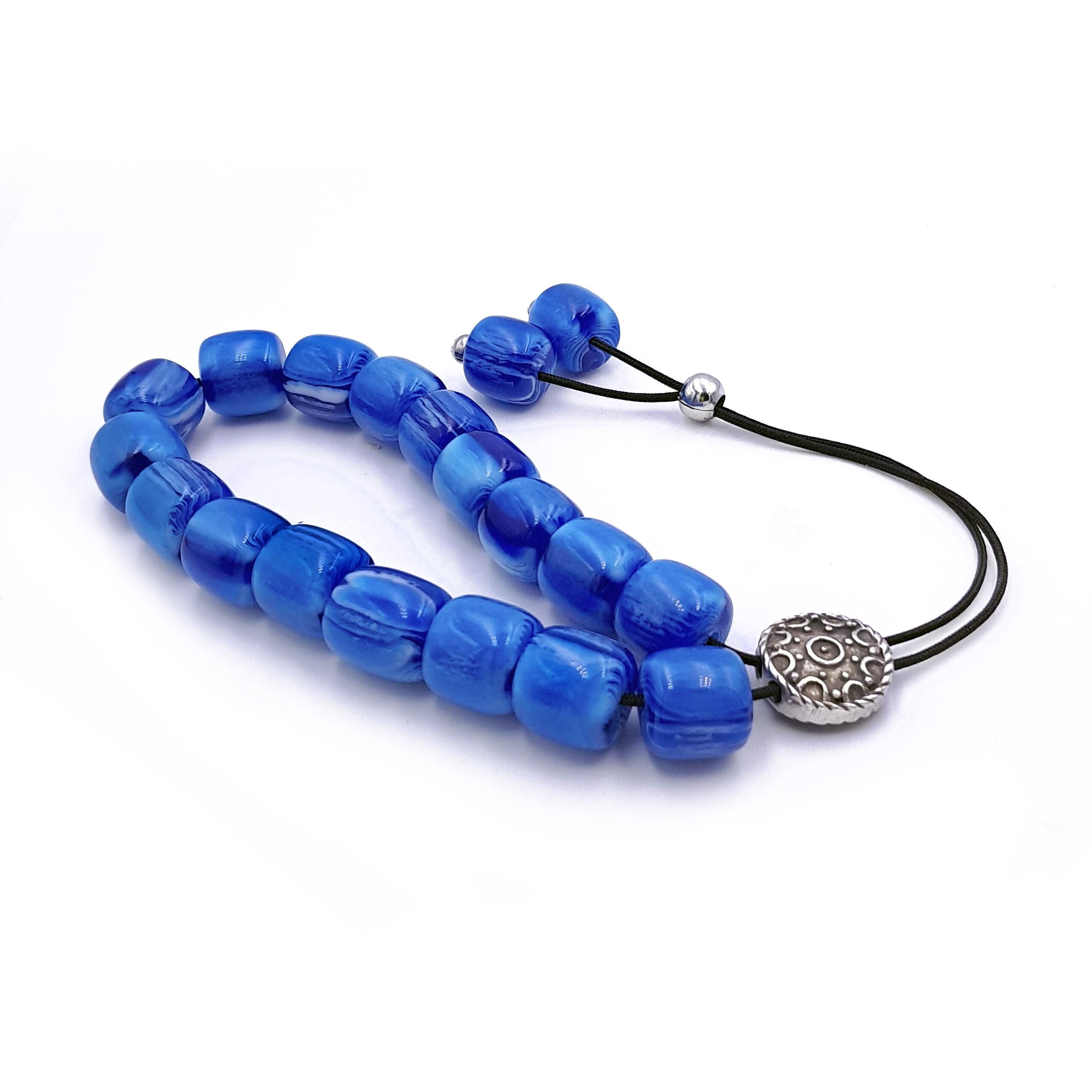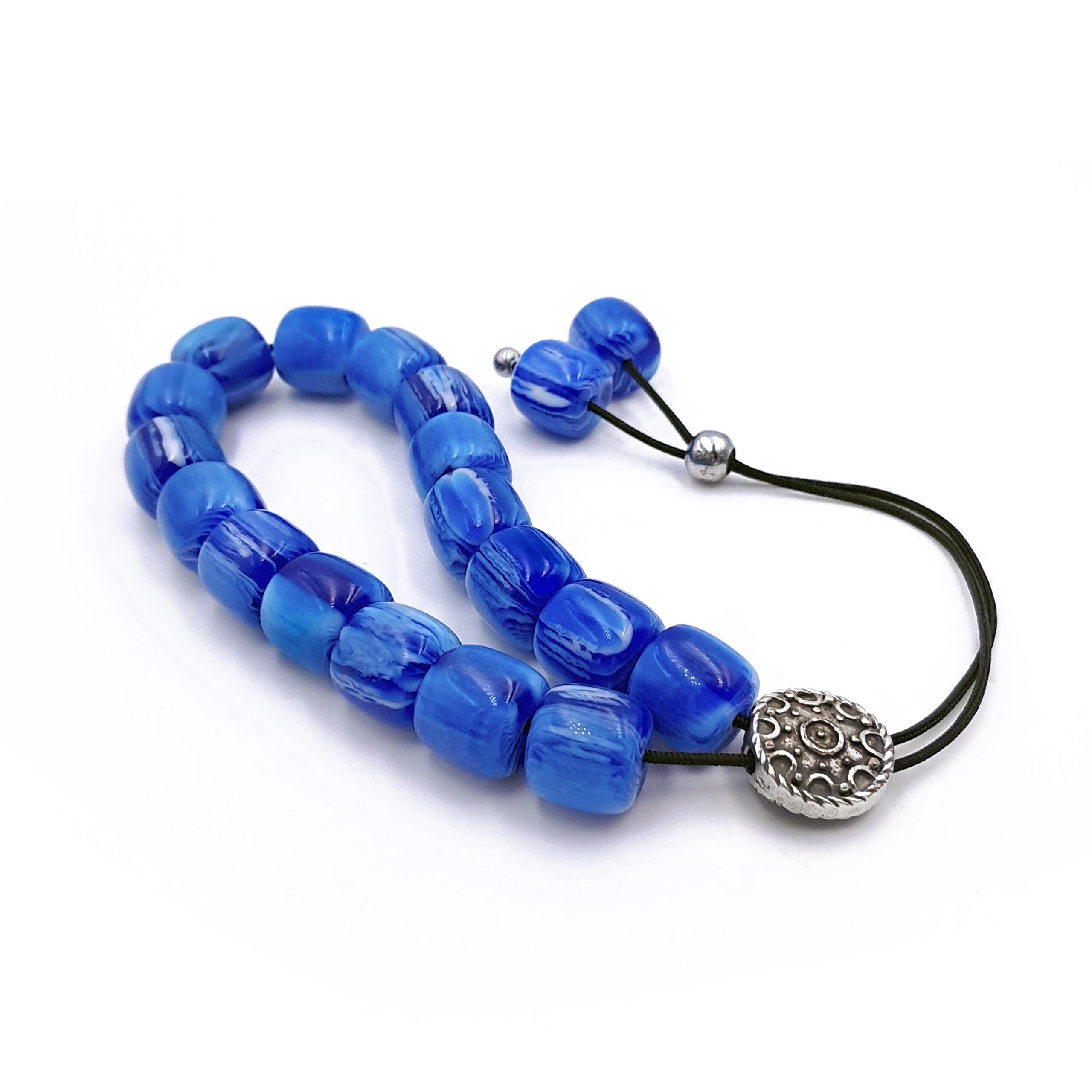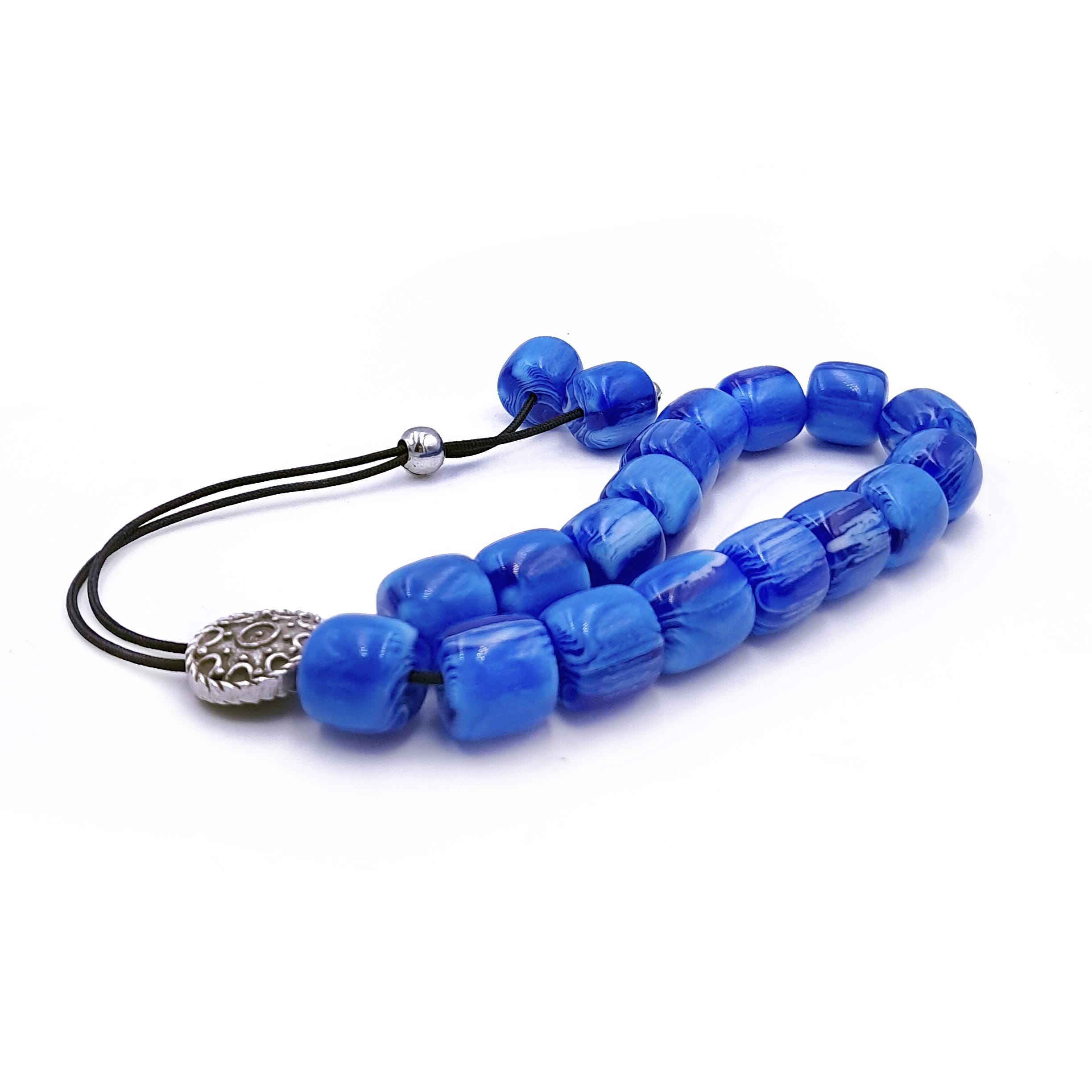 Greek komboloi (worry beads) made with 21 blue acrylic barrel beads and a silver-plated metal master bead. A classic set of komboloi, suitable for passing time and relaxation.