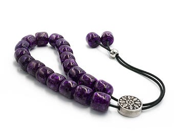 Komboloi, Greek Worry Beads with Black Barrel Beads, Unisex Gift